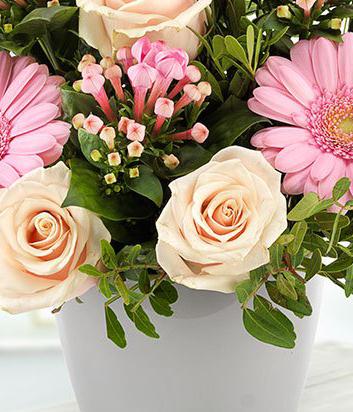 Includes Pink Rose, Pink Germini, Pink Bouvardia, Pistache.