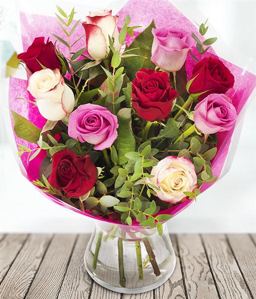 A gorgeous selection of pink, cerise and ruby red Roses for your Valentine.