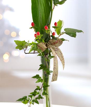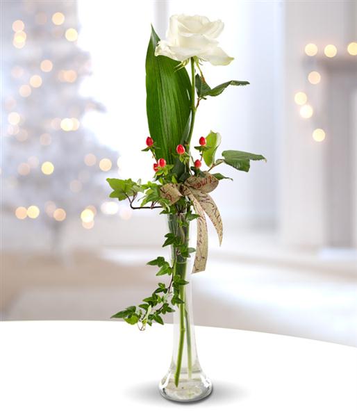 A stunning Christmas flower gift of a single white Rose, exquisitely presented in a clear glass Lily vase.
