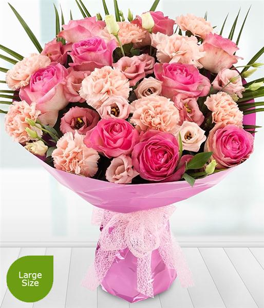 A luxurious pink Rose and Lily aqua pack bouquet exquisitely presented.