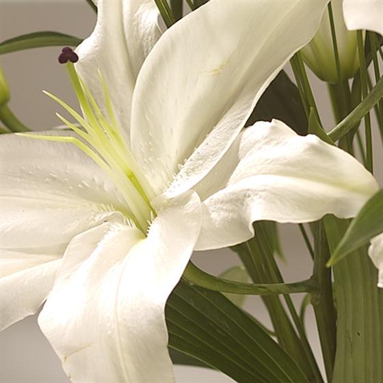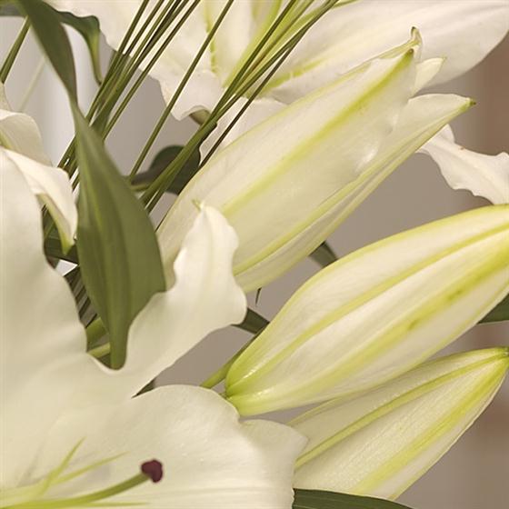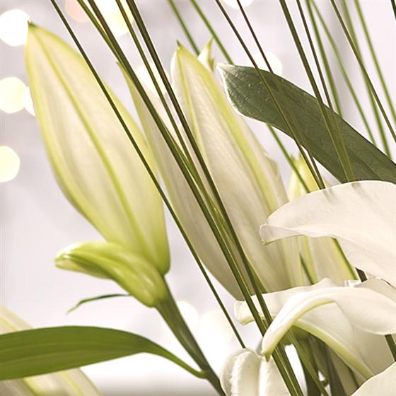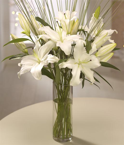 Simplicity is the key to this magnificent white Lily vase arrangement. Steel Grass adds an extra dimension to its elegance.