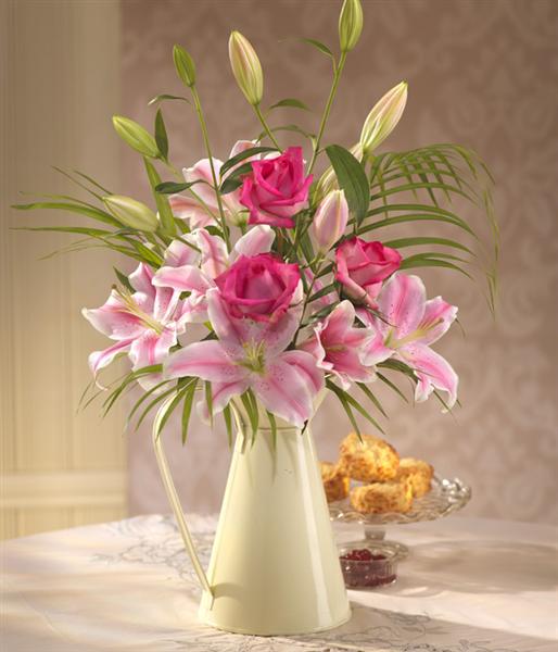 Classic Lilies and Roses complete with a jug makes the perfect Mother's Day gift.