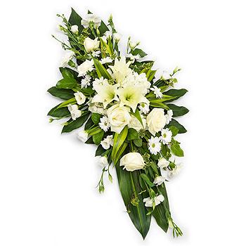 A classic white double ended spray. Featuring white Roses, Lilies, Hydrangea, Lisianthus, Chyrsanthemums and Carnations.